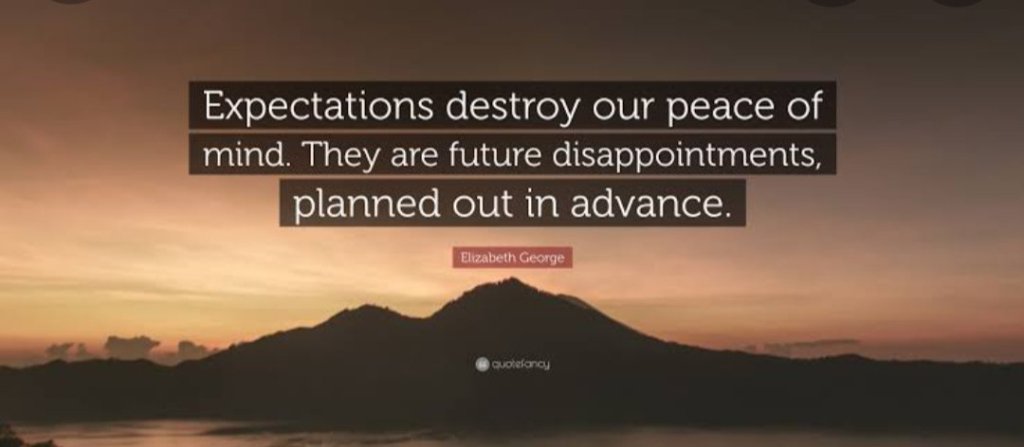 Expectations are evil they give us happiness for a certain time period. Even if things do turn out as expected the happiness we get from it is short term, maybe it is good to expect sometimes so that we push our boundaries,step out of our comfort zones but at the end of the day we want results if that doesn’t come as expected one might feel burdened which leads to disappointment.